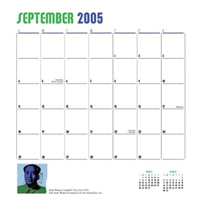 Andy Warhol Pop Art: 2005 Wall Calendar Thursday, 23 January 2020 Edit Category: Books,Arts & Photography,Performing ArtsAndy Warhol Pop Art: 2005 Wall Calendar Details Reviews Share this post